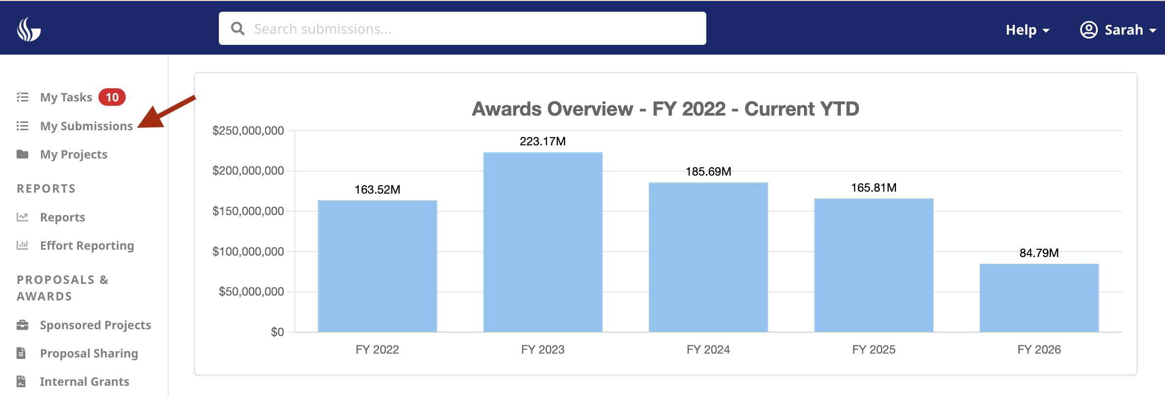 Select My Submissions from the left side menu: